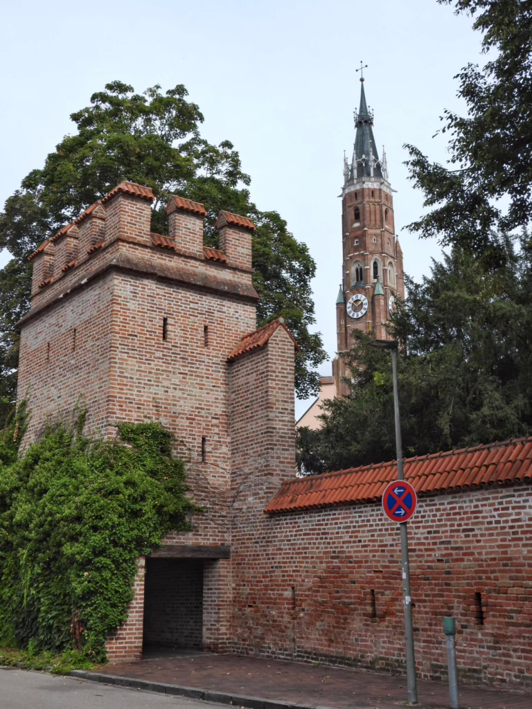 Een van de hoogtepunten van de oude stad is op zeker de Sint Martinuskerk (Stiftsbasilika Sankt Martin). Een vorige kerk ging bij een stadsbrand in 1342 verloren. De bouw van deze laatgotische kerk start in 1380 onder bouwmeester Hans von Burghausen en is pas in 1500 voltooid. De toren zou met 131 meter de hoogste baksteentoren ter wereld zijn. Het is in ieder geval de hoogste in Beieren,
